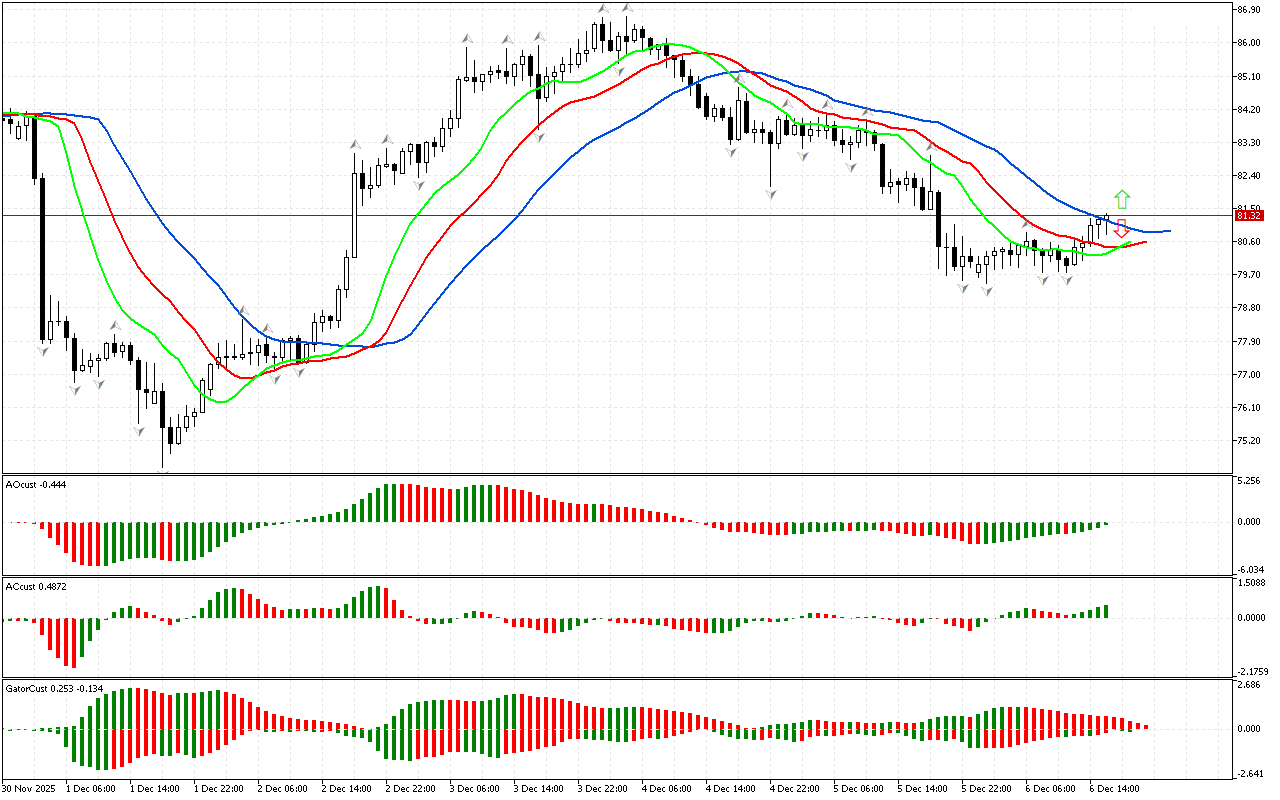 The color of the histograms of the Gator indicator changes, so this indicator has not formed a clear signal yet.